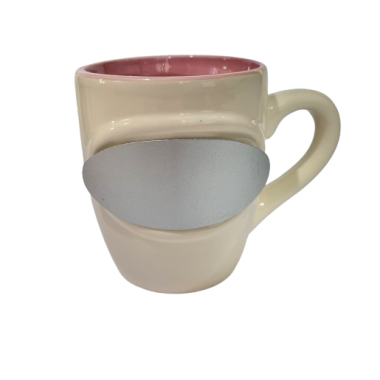 Tazza in ceramica color panna, con l'interno disponibile nelle colorazioni: rosa e celeste. Caratterizzata da una targa in metallo che permette la personalizzazione....
